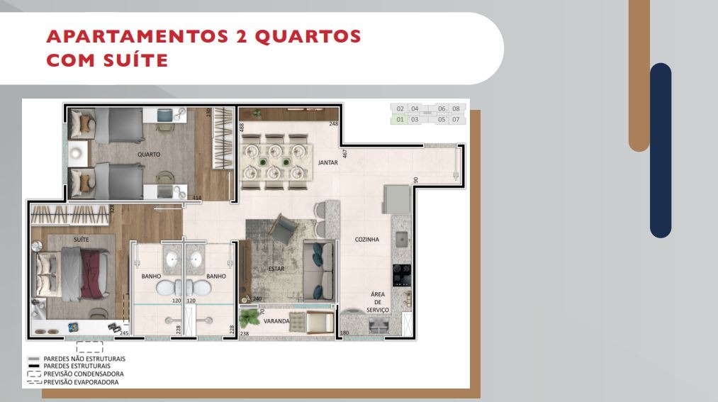 - 01 Sala Ampla com opção de integração com a Cozinha.