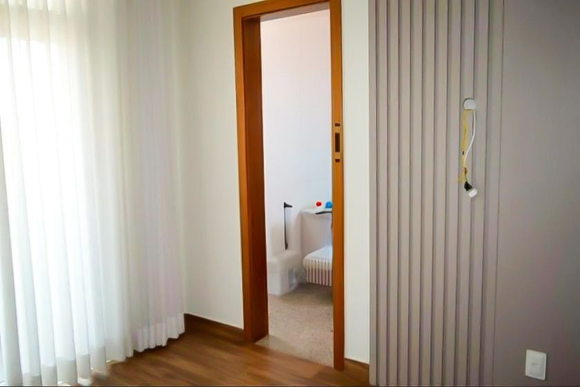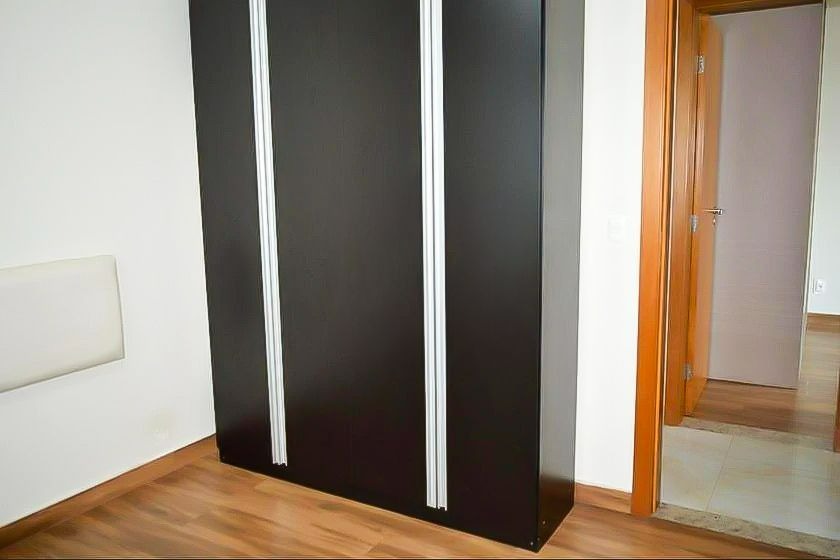 Apartamento com aproximadamente 81m² de área, contendo uma sala, três quartos e dois banheiros, no bairro Eldorado em Contagem/MG.
