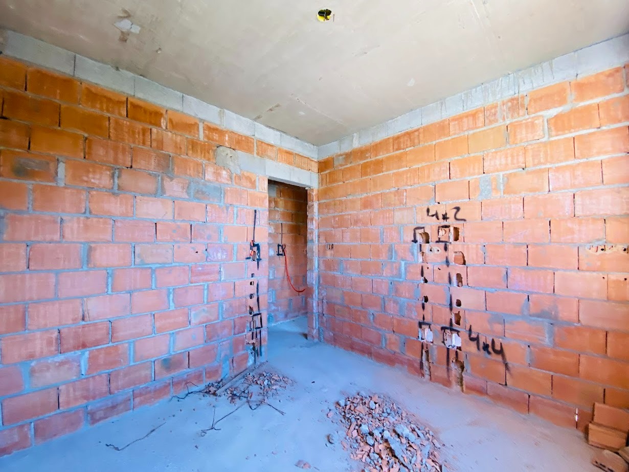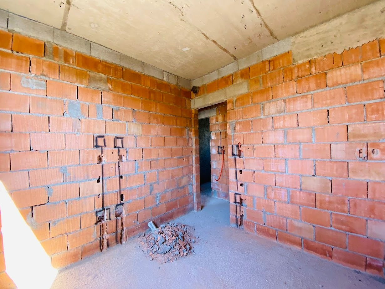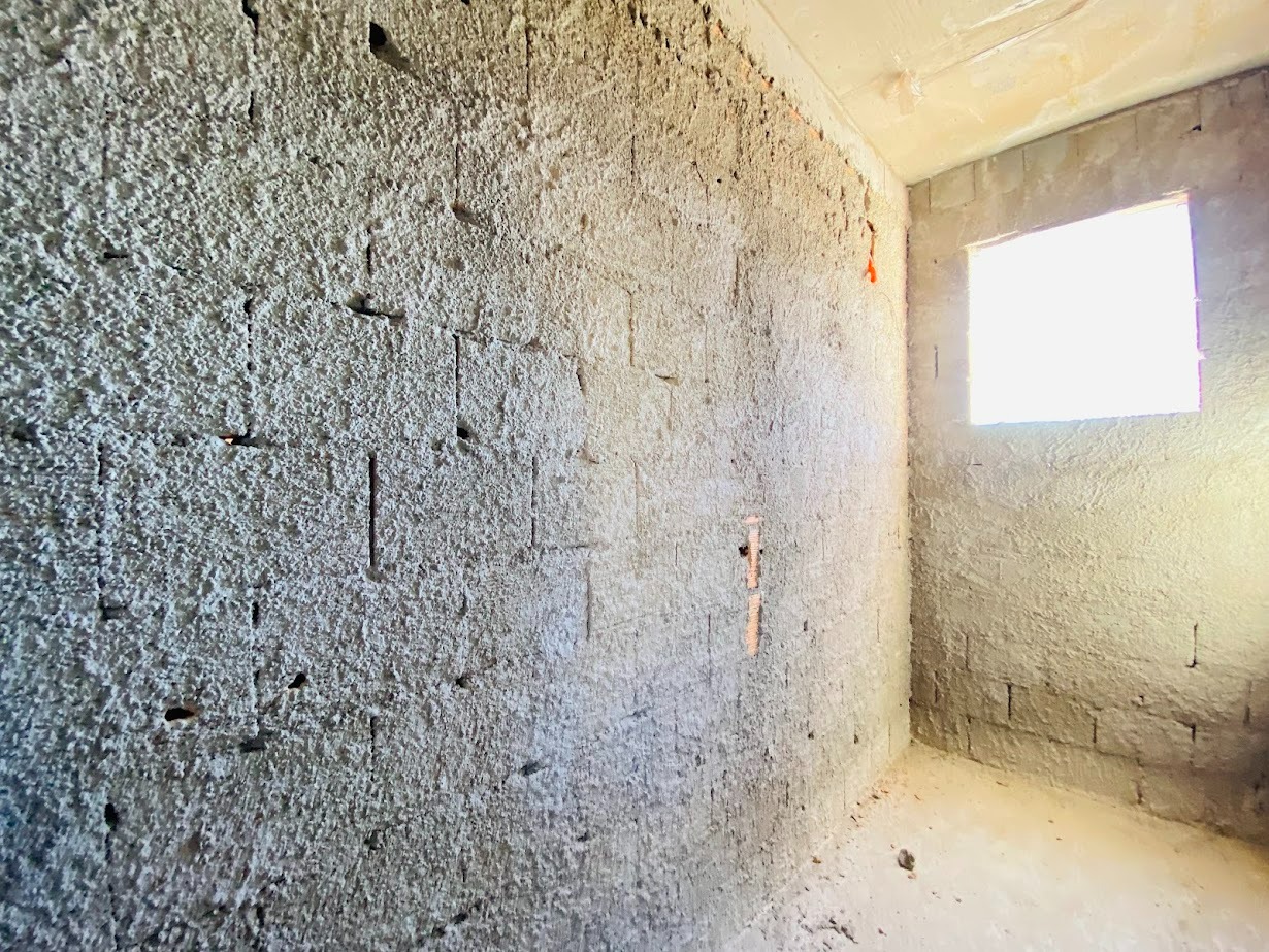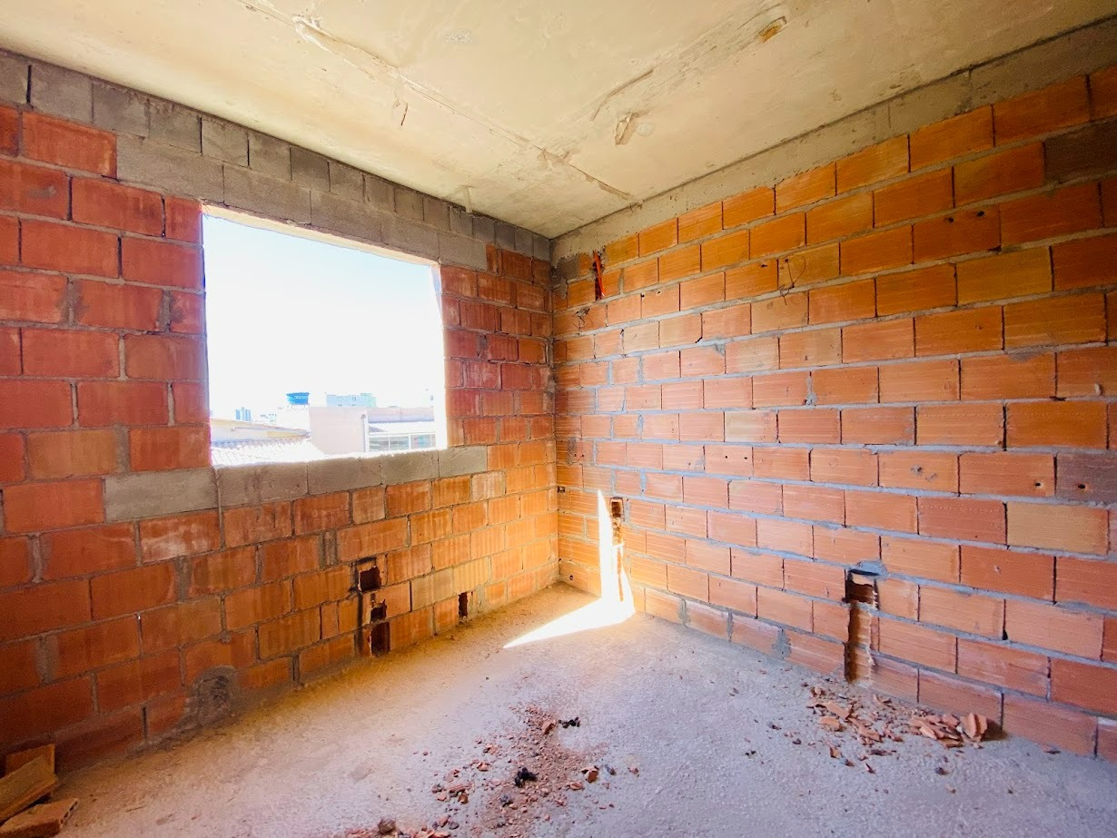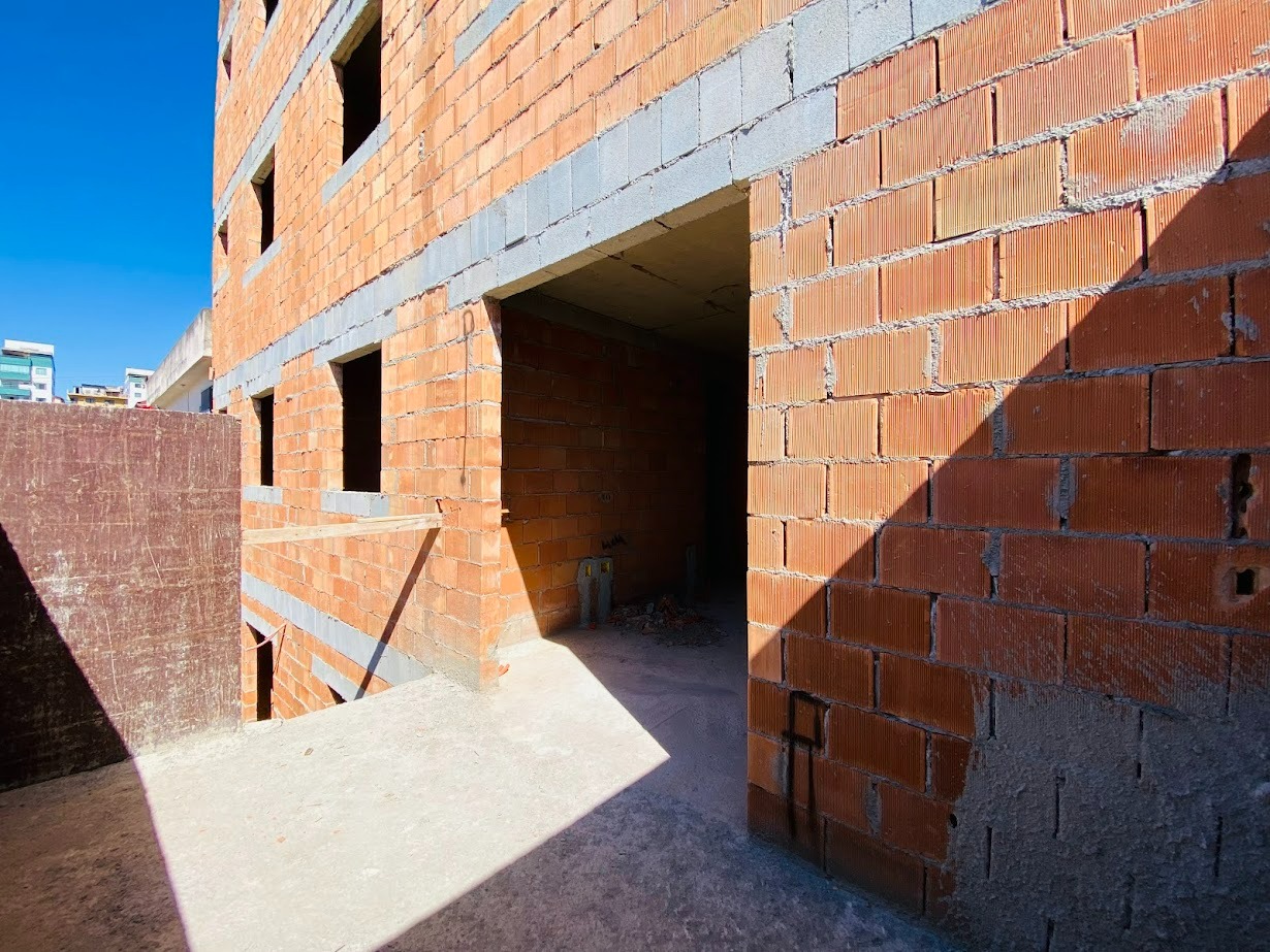 Apartamento com área privativa de 90,00m², uma sala ampla, três quartos, uma área de serviço, dois banheiros, uma suíte, uma varanda, elevador e duas vagas de garagem.