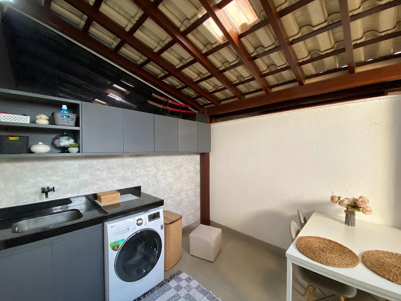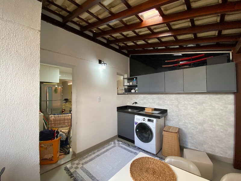- Área externa com churrasqueira e armários planejados , área de serviço conjugada e coberta;