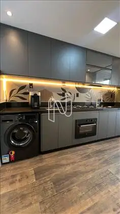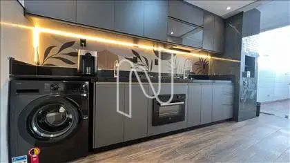são três dormitórios – incluindo uma suíte espaçosa – além de sala de estar integrando estar e jantar todos automatizados por comando de alexia, cozinha com armários planejados e área de serviço funcional.