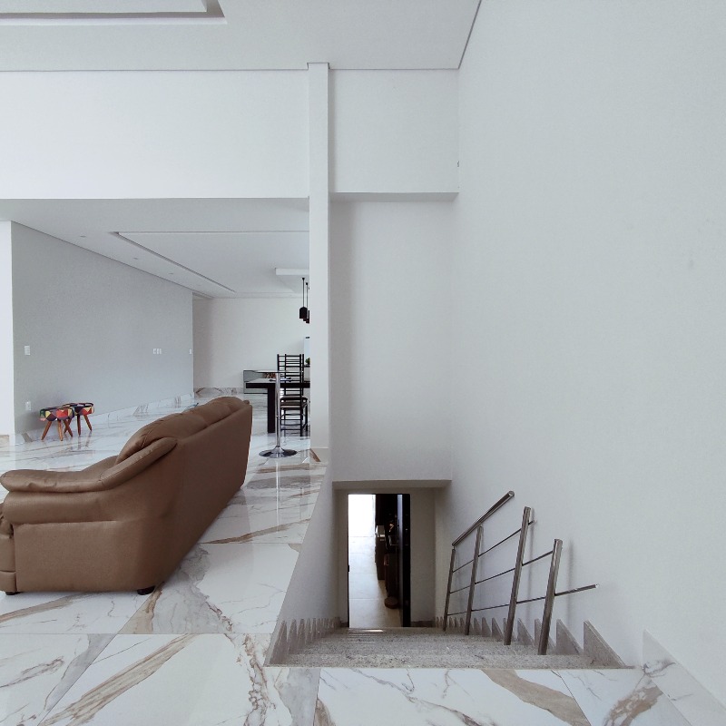 A Casa possui 560m² de área útil total, sendo 400m² de área construída em um lote de 360m². Ela está na seguinte disposição:
