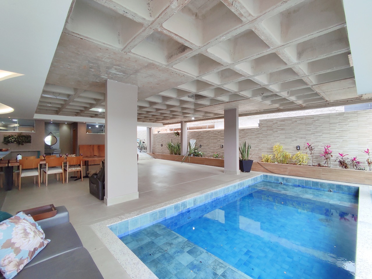 - 01 Piscina Coberta com Cascata e predisposição para aquecedor.