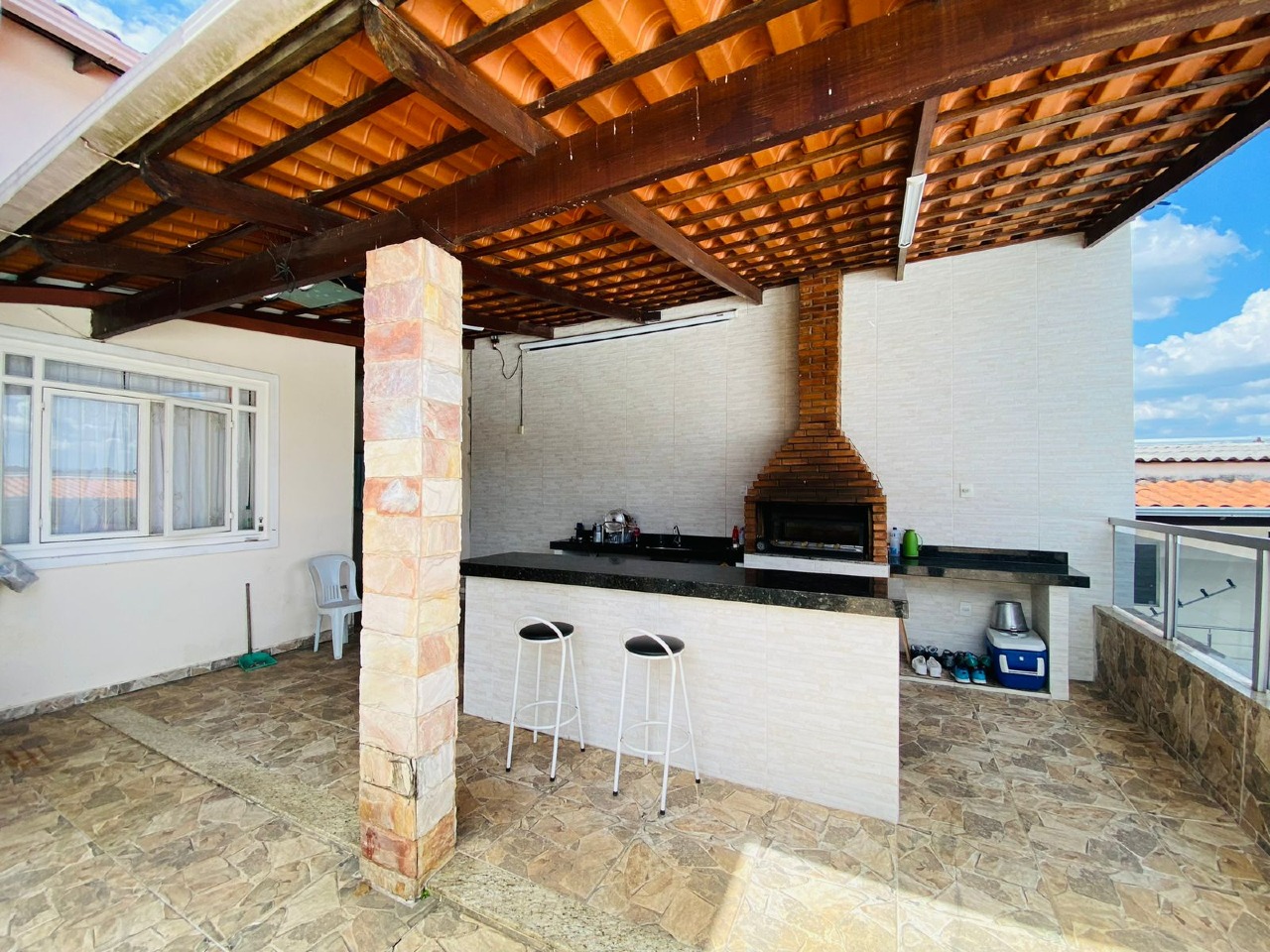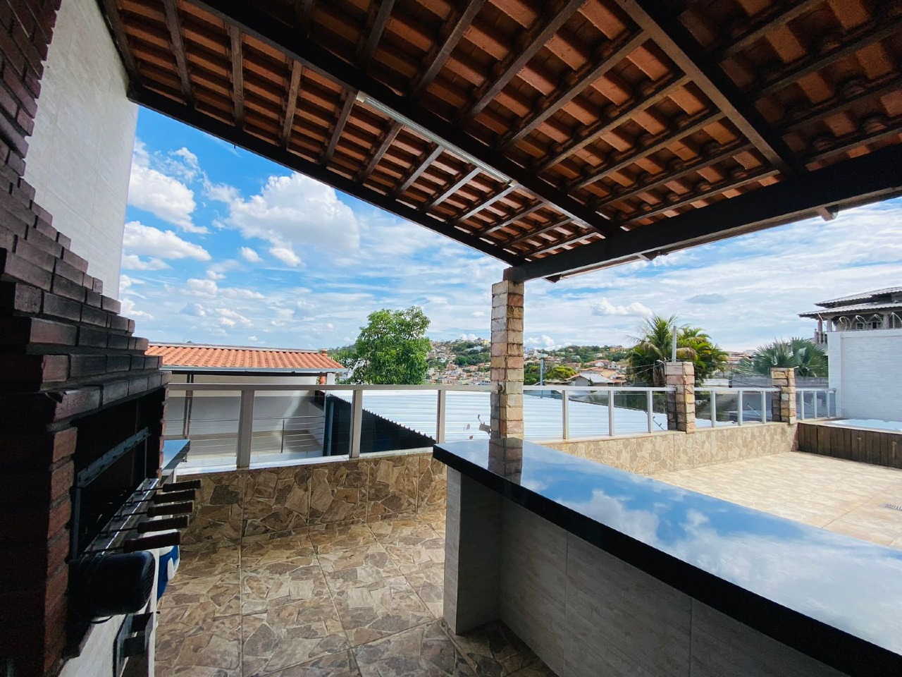 Ela esta em um lote totalmente plano, com 2 vagas de garagem, uma área externa com ofurô, churrasqueira e uma parte coberta de telhado colonial.