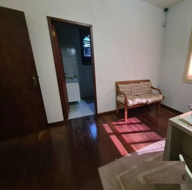 - 01 Sala ampla com piso em tábua corrida, janelas e portas em madeira,