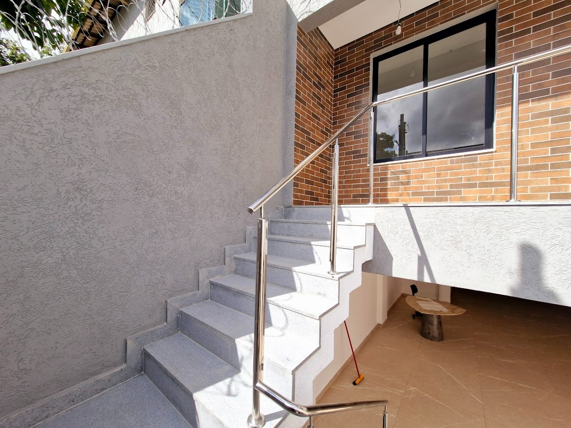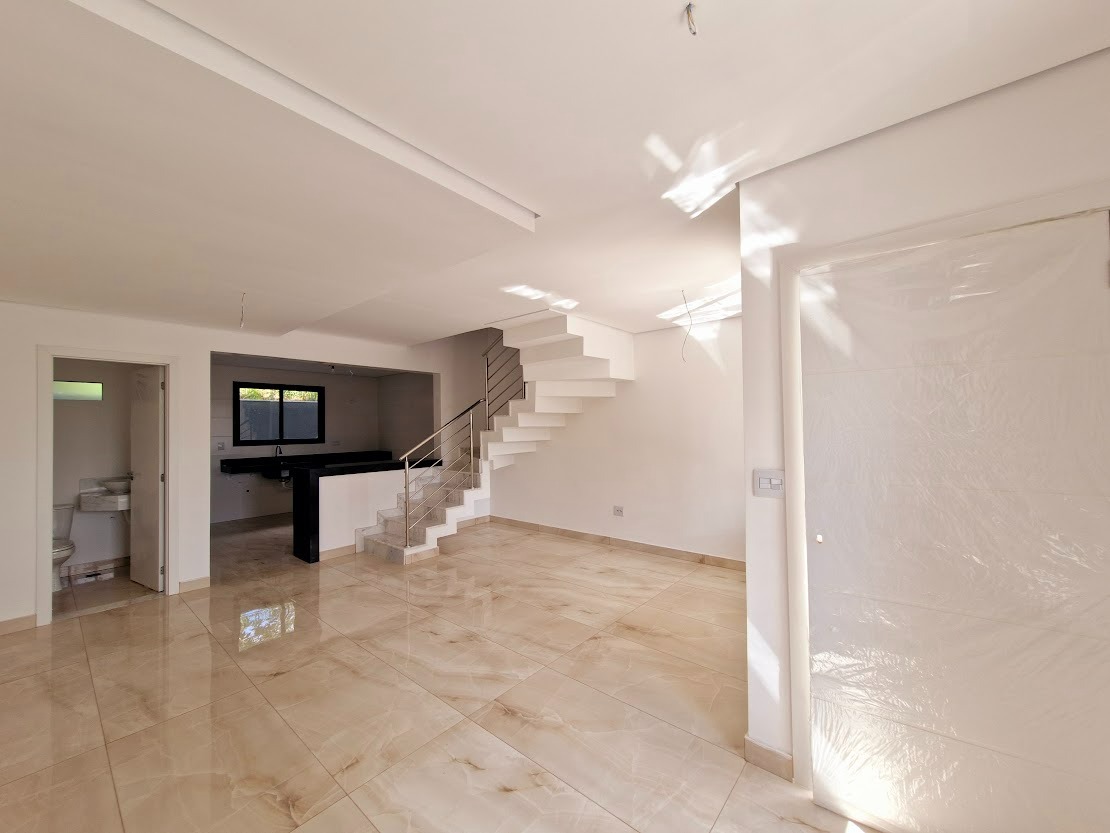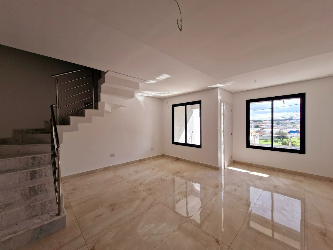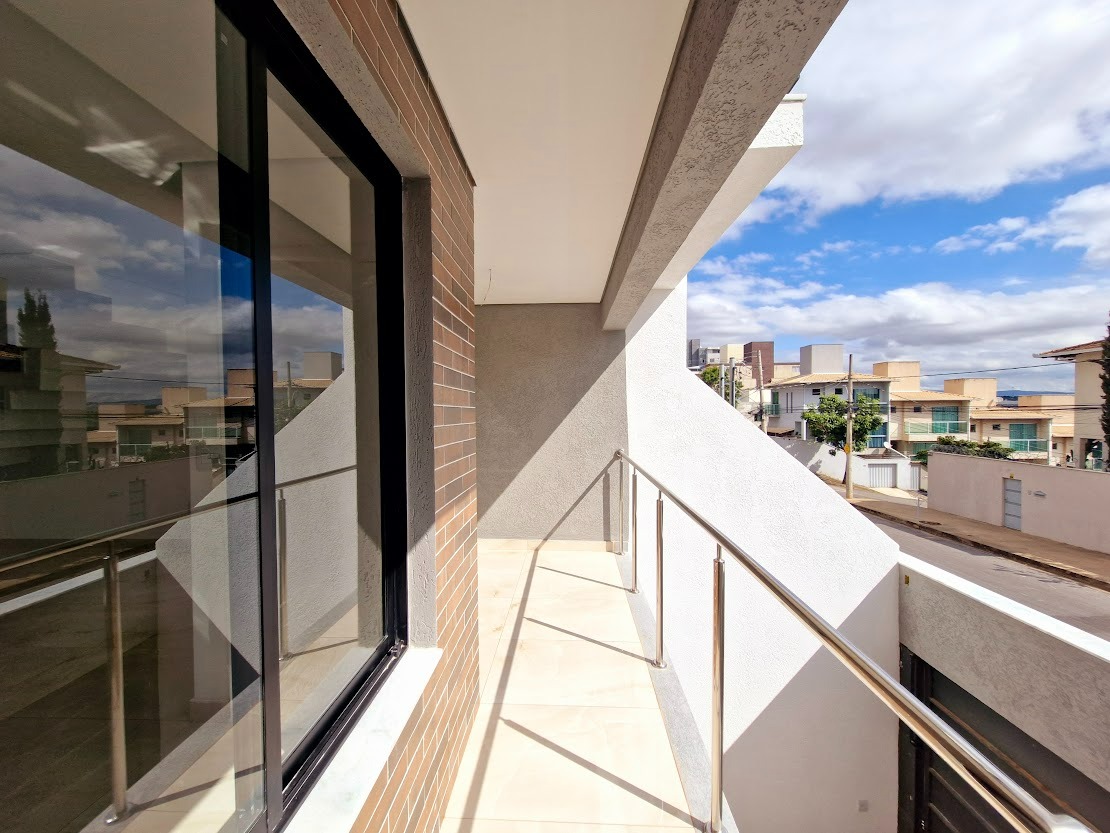 Casa geminada em construção de aproximadamente 170m² de área total, três quartos sendo uma suíte, varanda, uma sala, um banheiro, três vagas de garagem, área de serviço; localizado a 3min do Shopping Contagem, no bairro Cabral em Contagem.