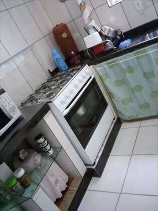 01 Cozinha ampla, toda revestida em cerâmica, com armários planejados e bancada em granito.