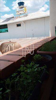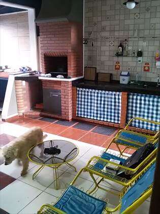 01 Varanda, toda revestida em cerâmica, com jardim e área gourmet, com churrasqueira, bancada em granito, corredor lateral com jardim e escada para acesso ao segundo andar com uma sacada.