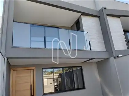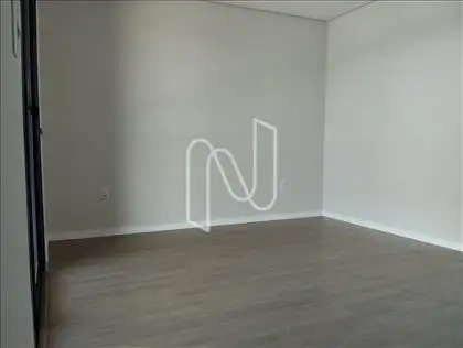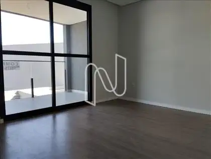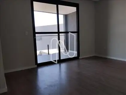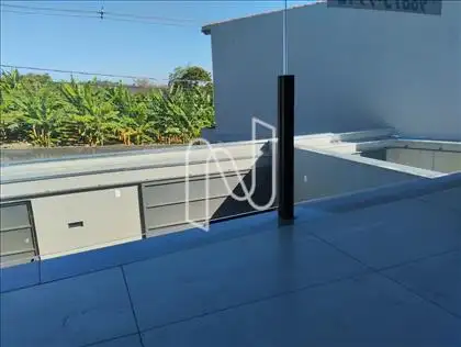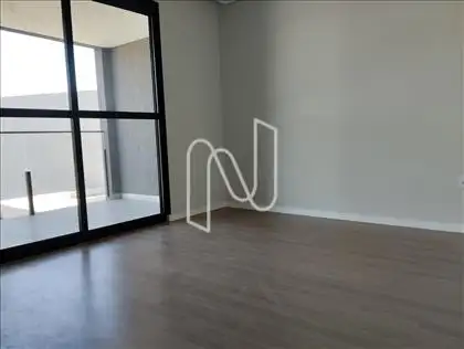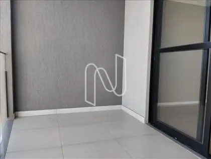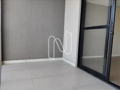 - 1 Suíte ampla com piso em laminado, rodapés branco, acompanhada de uma sacada com mureta em vidro temperado transparente e piso em porcelanato Semi-grês com visão da entrada do imóvel;