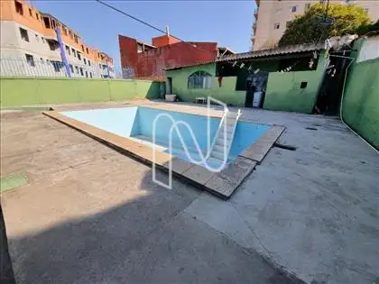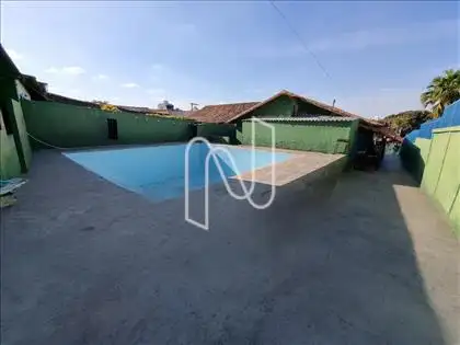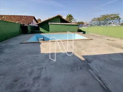 Em um quintal muito espaçoso temos uma piscina em alvenaria.