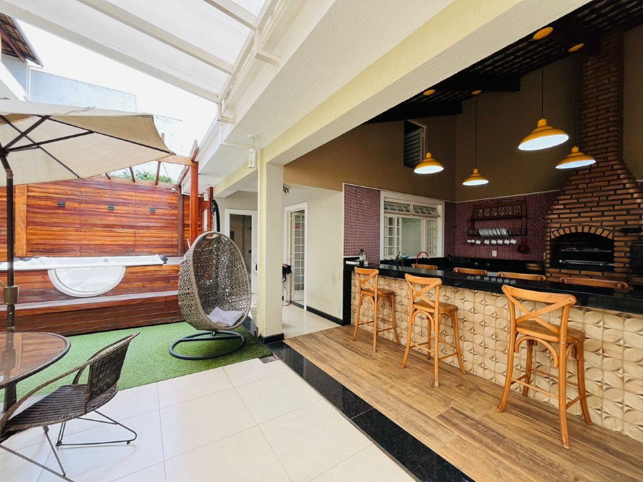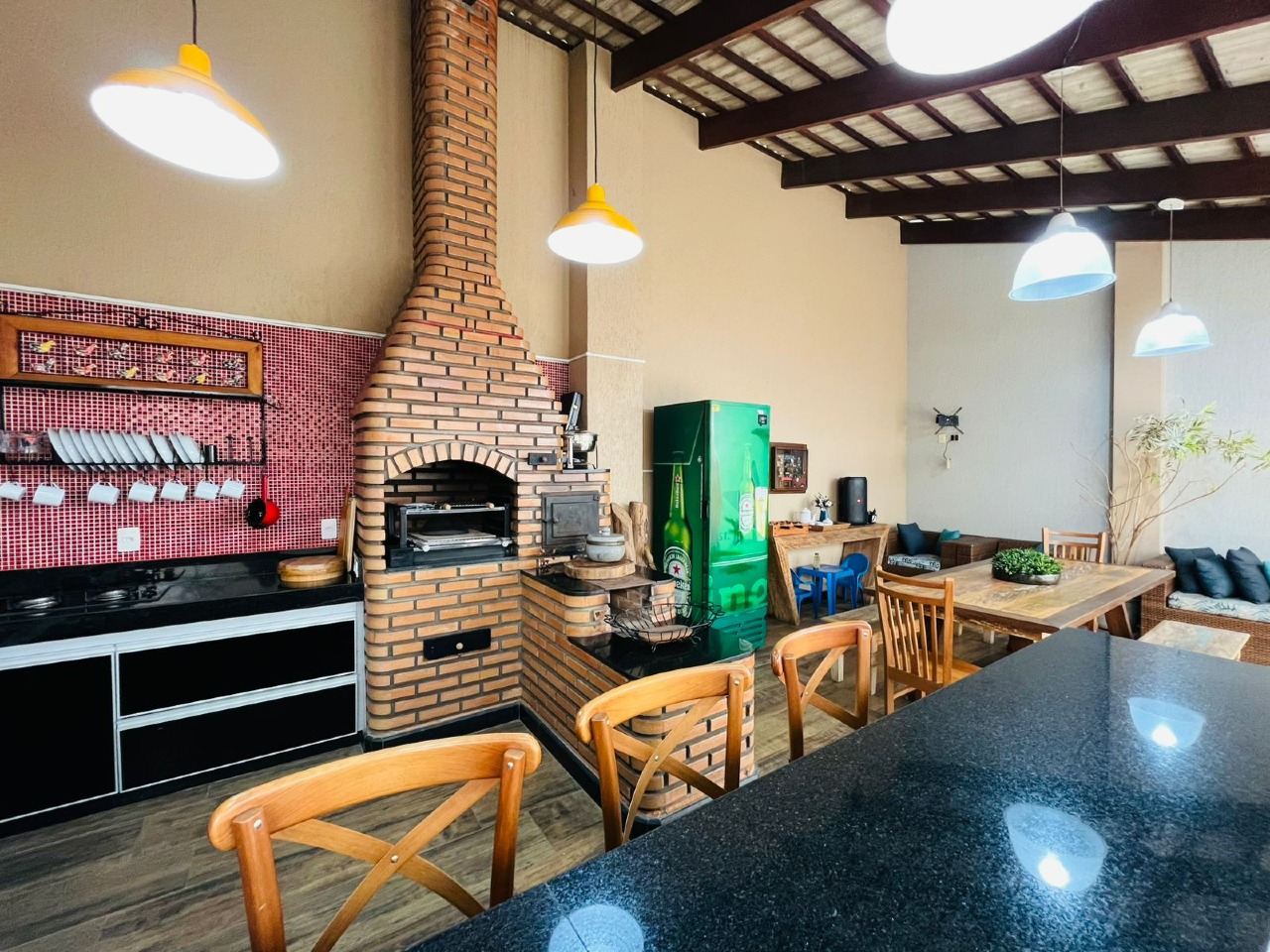 - Área gourmet coberta com mesa