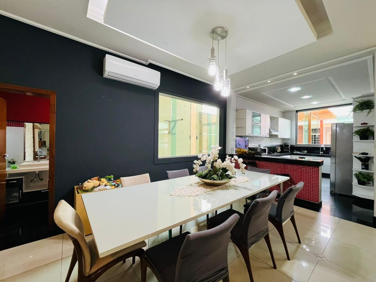 - Cozinha toda planejada conjugada com a sala de jantar
