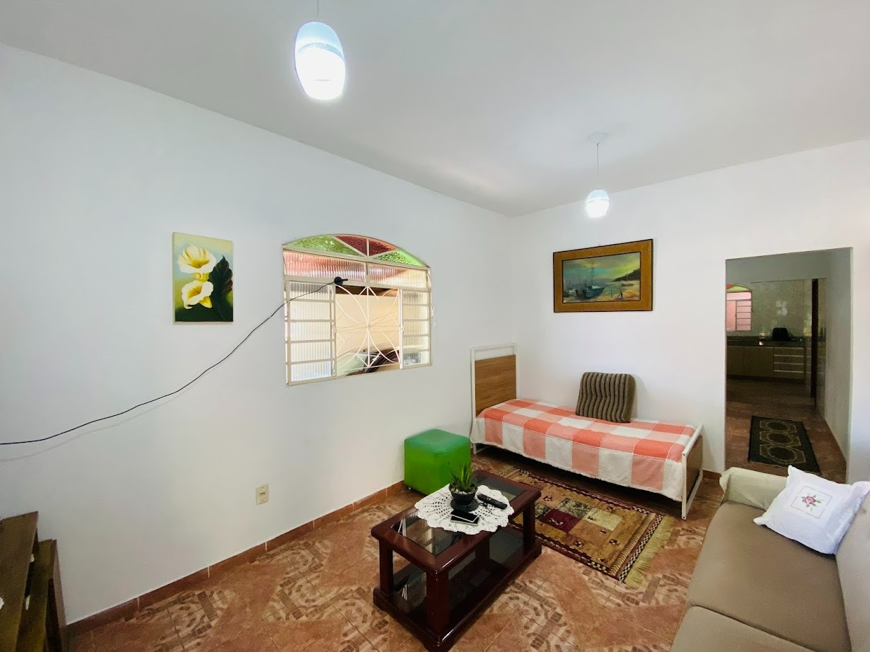 Casa plana com Escritura e Registro, em lote com área de 360m² com três quartos, um banheiro e cinco vagas a 500m da Praça da Glória em Contagem.