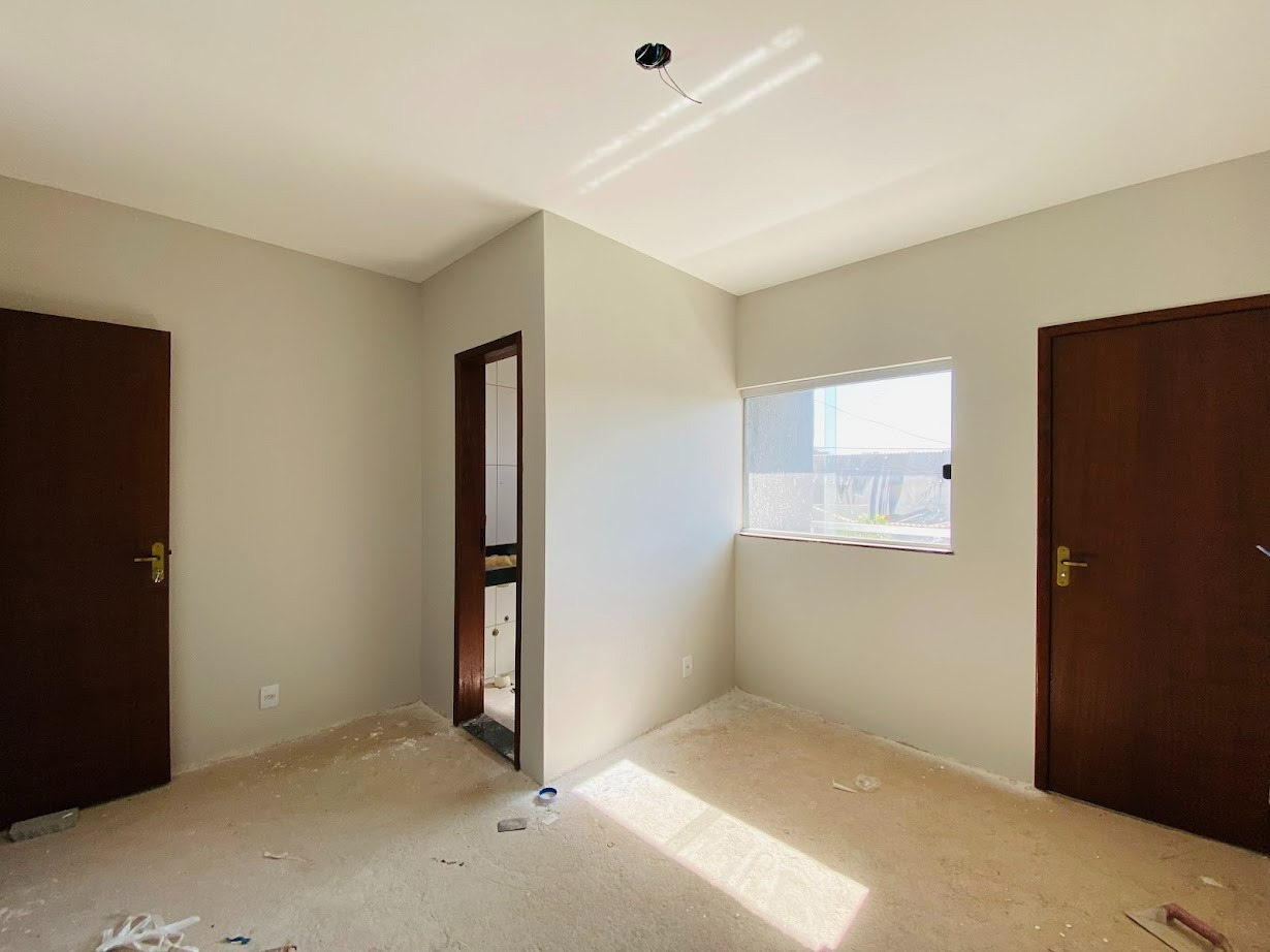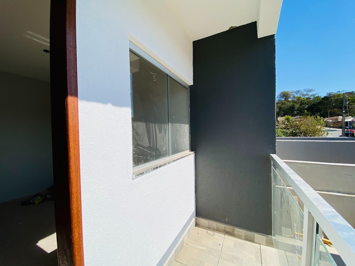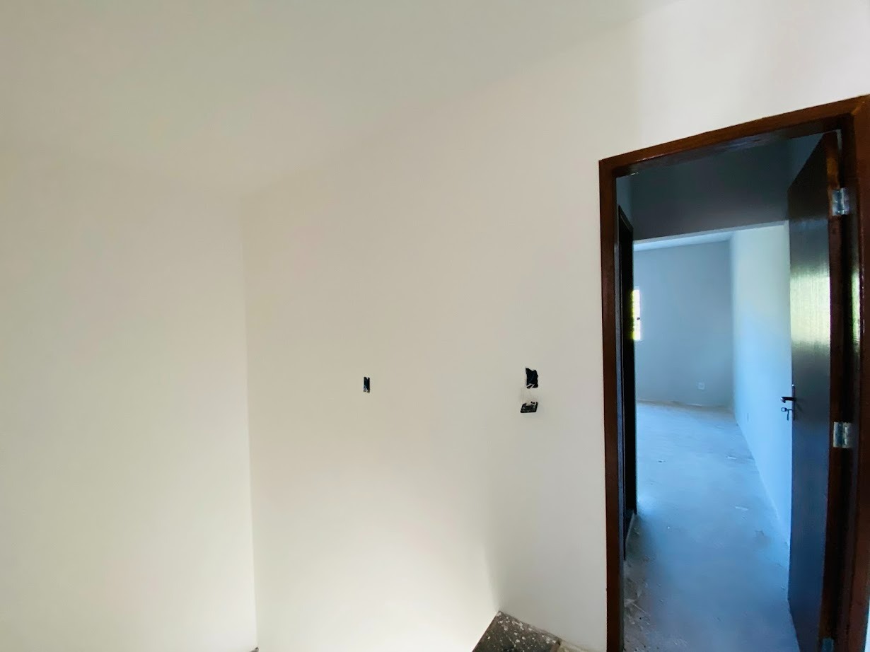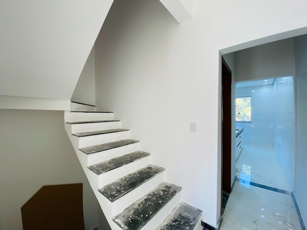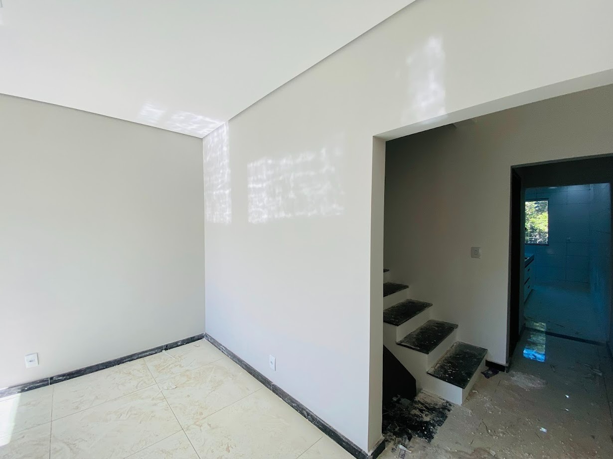 Casa triplex com área de 154m², uma sala, três quartos, uma área de serviço, três banheiros, duas suítes, cozinha revestida e com armários, uma varanda no quarto no terceiro andar e duas vagas de garagem.