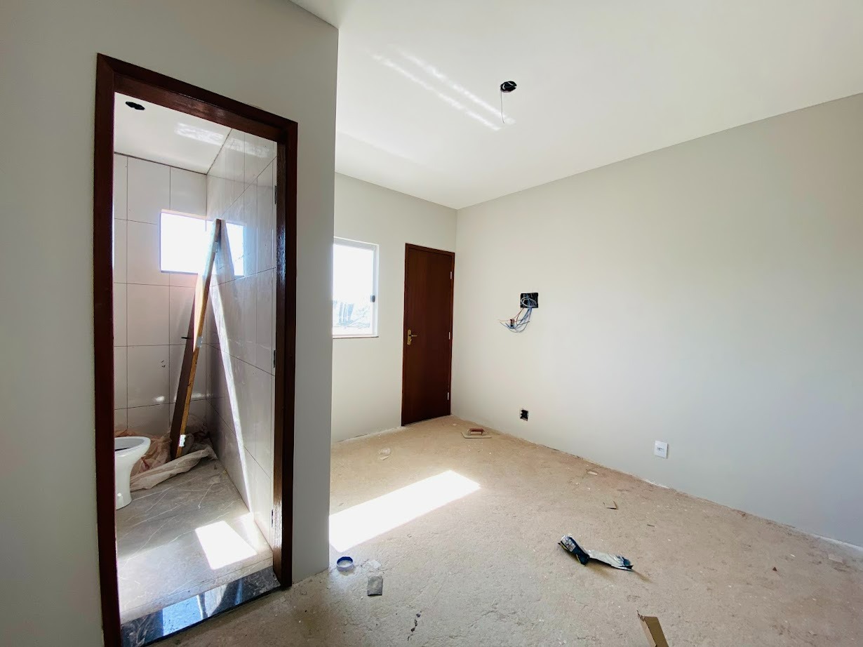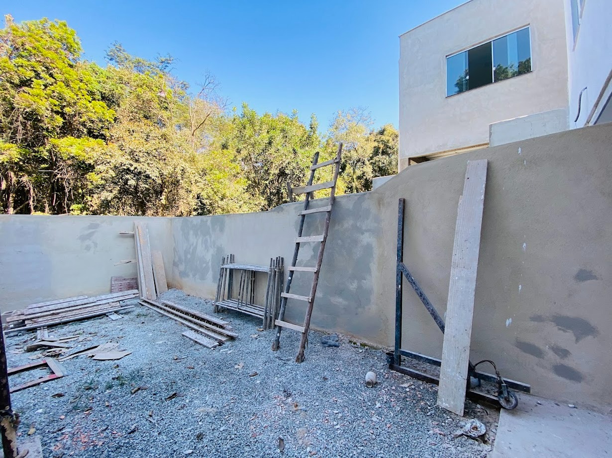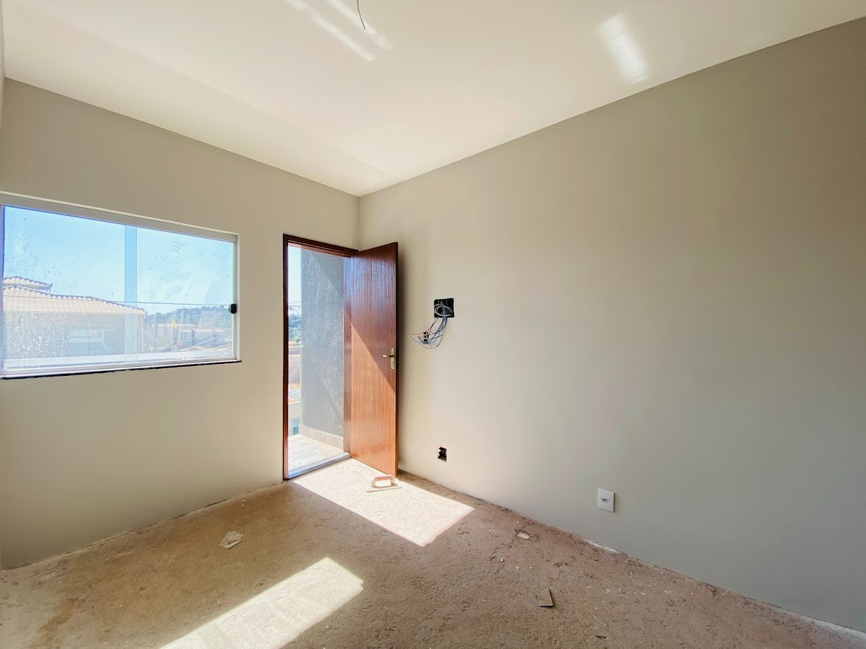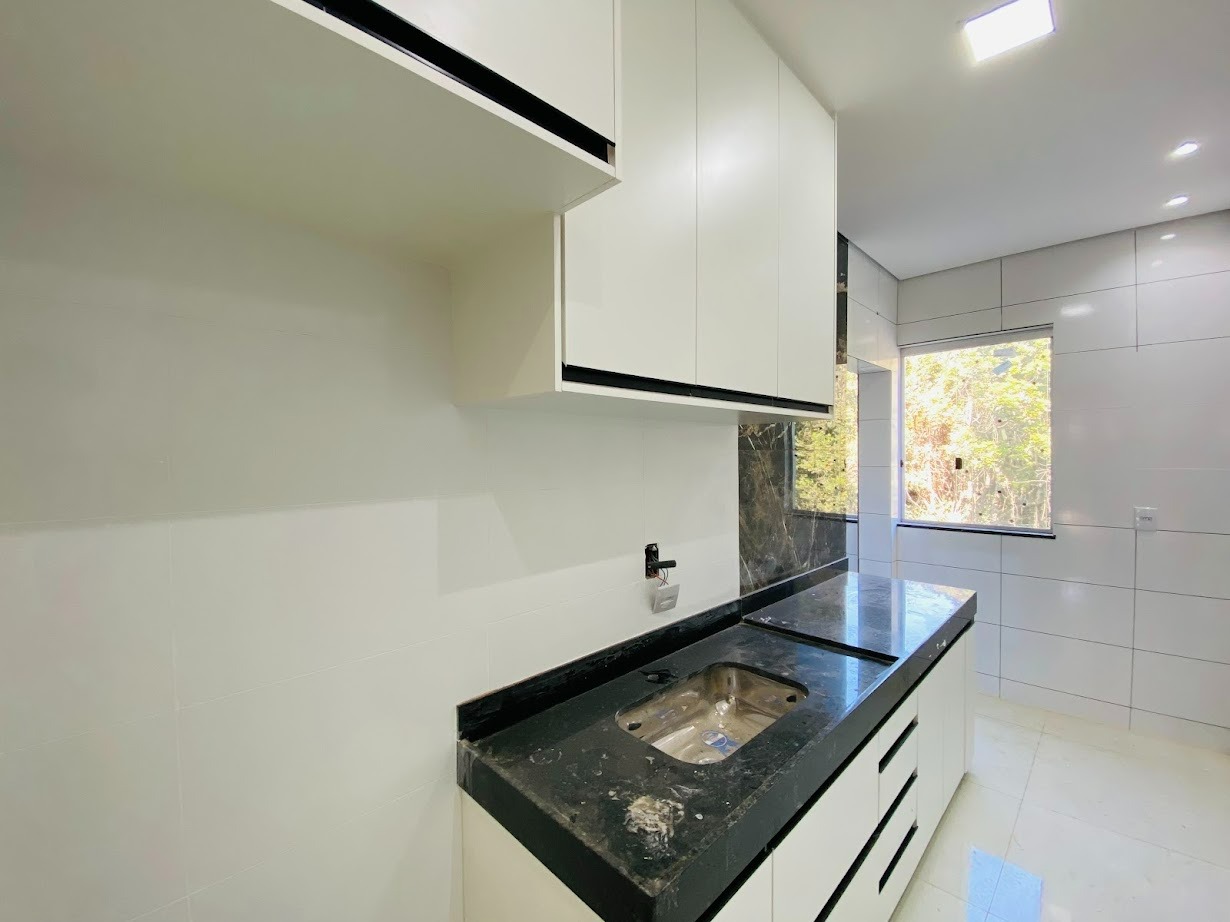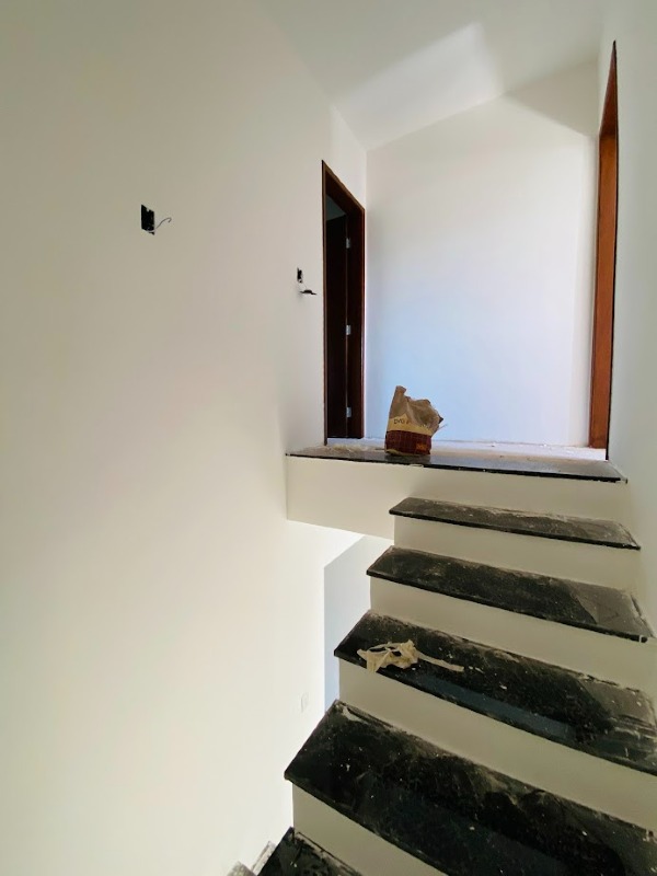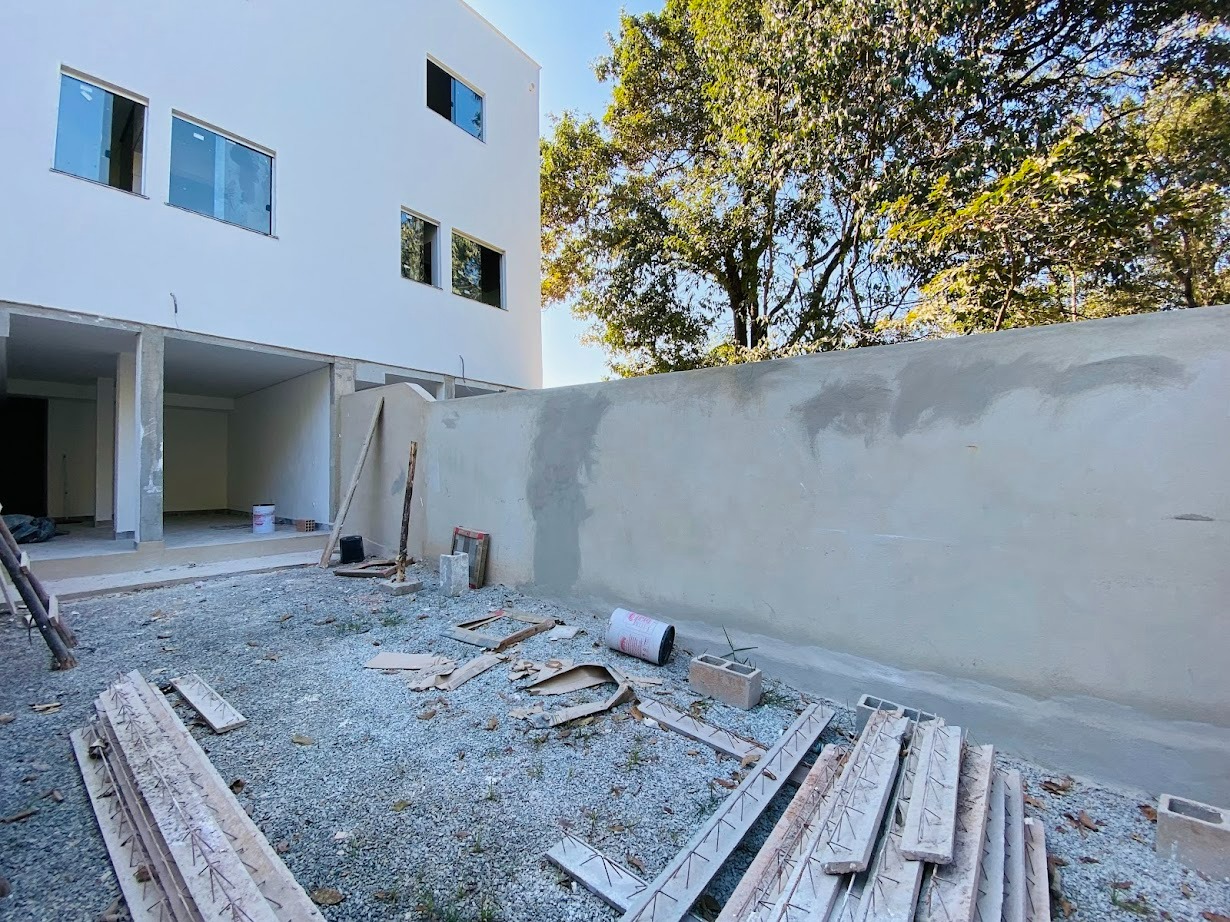 Casa triplex com área de 154m², uma sala, três quartos, uma área de serviço, três banheiros, duas suítes, cozinha revestida e com armários, uma varanda no quarto no terceiro andar e duas vagas de garagem.