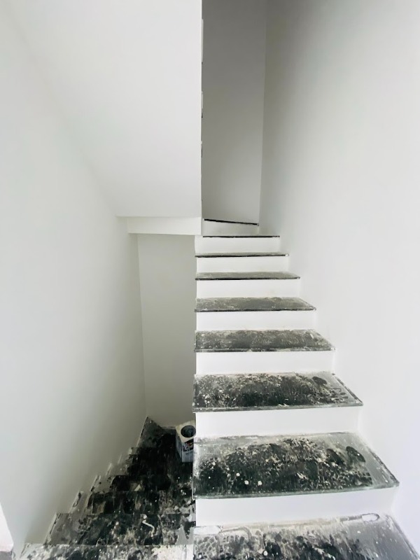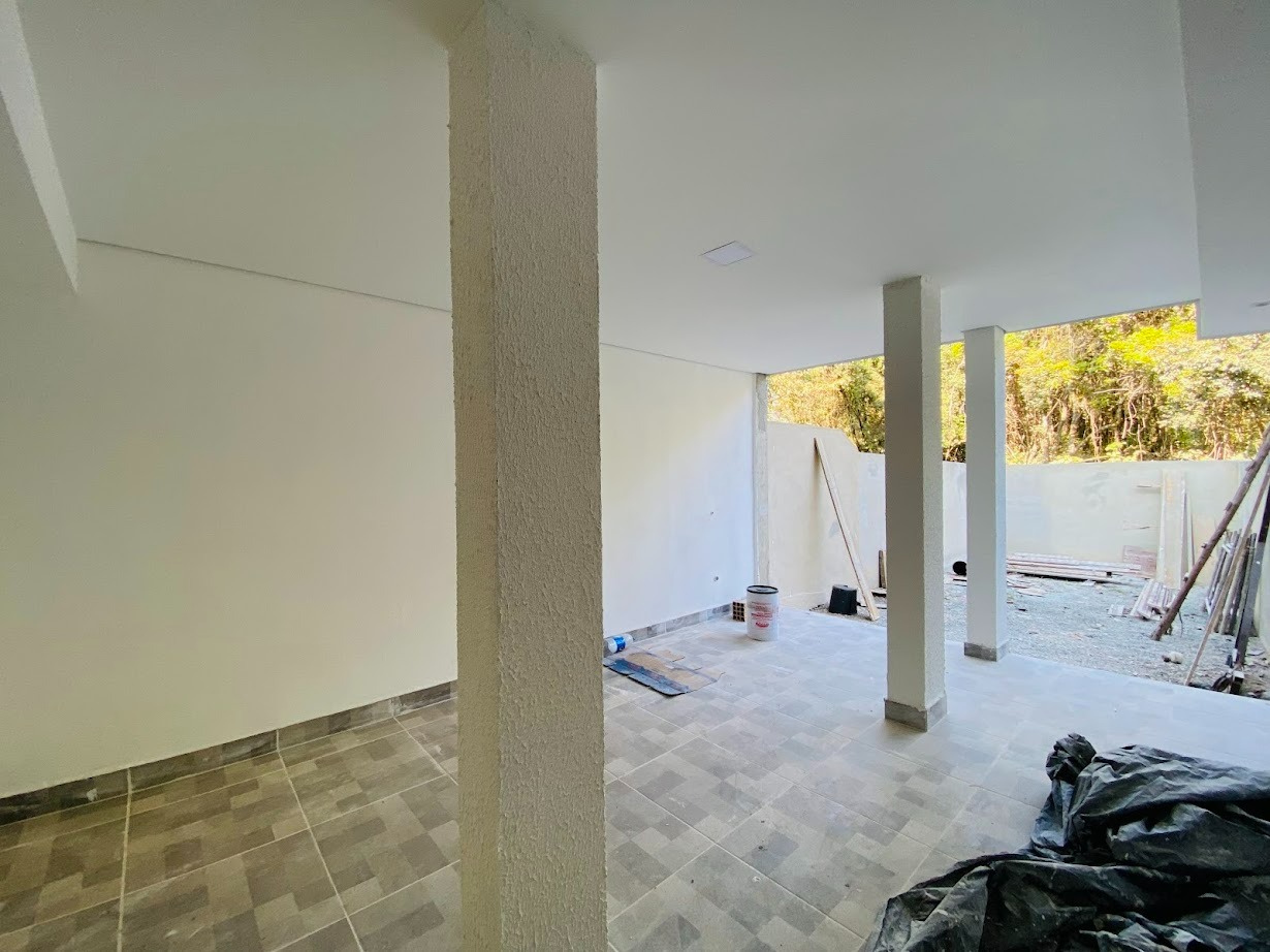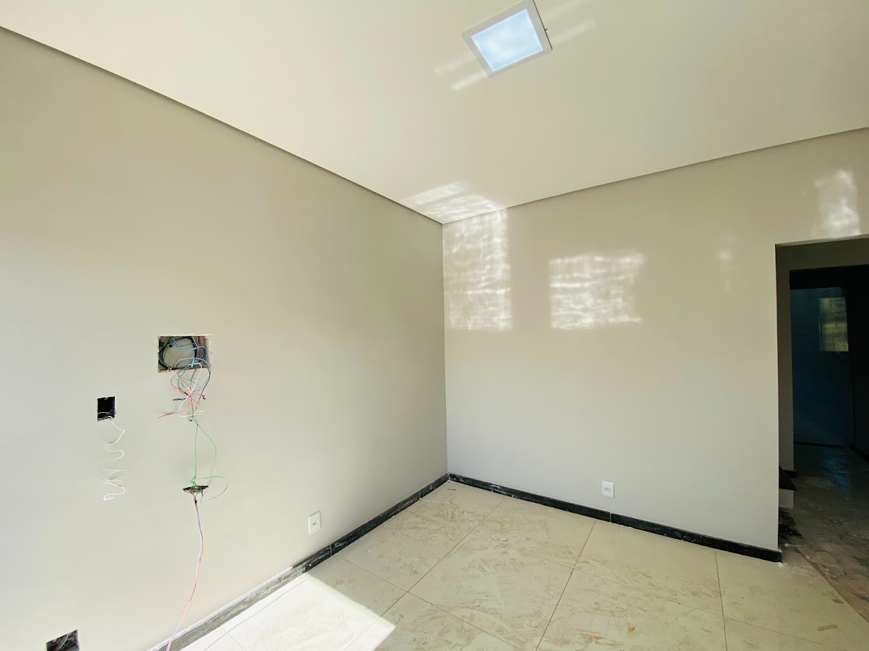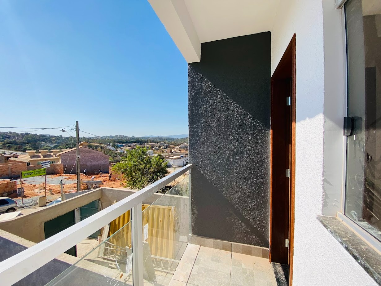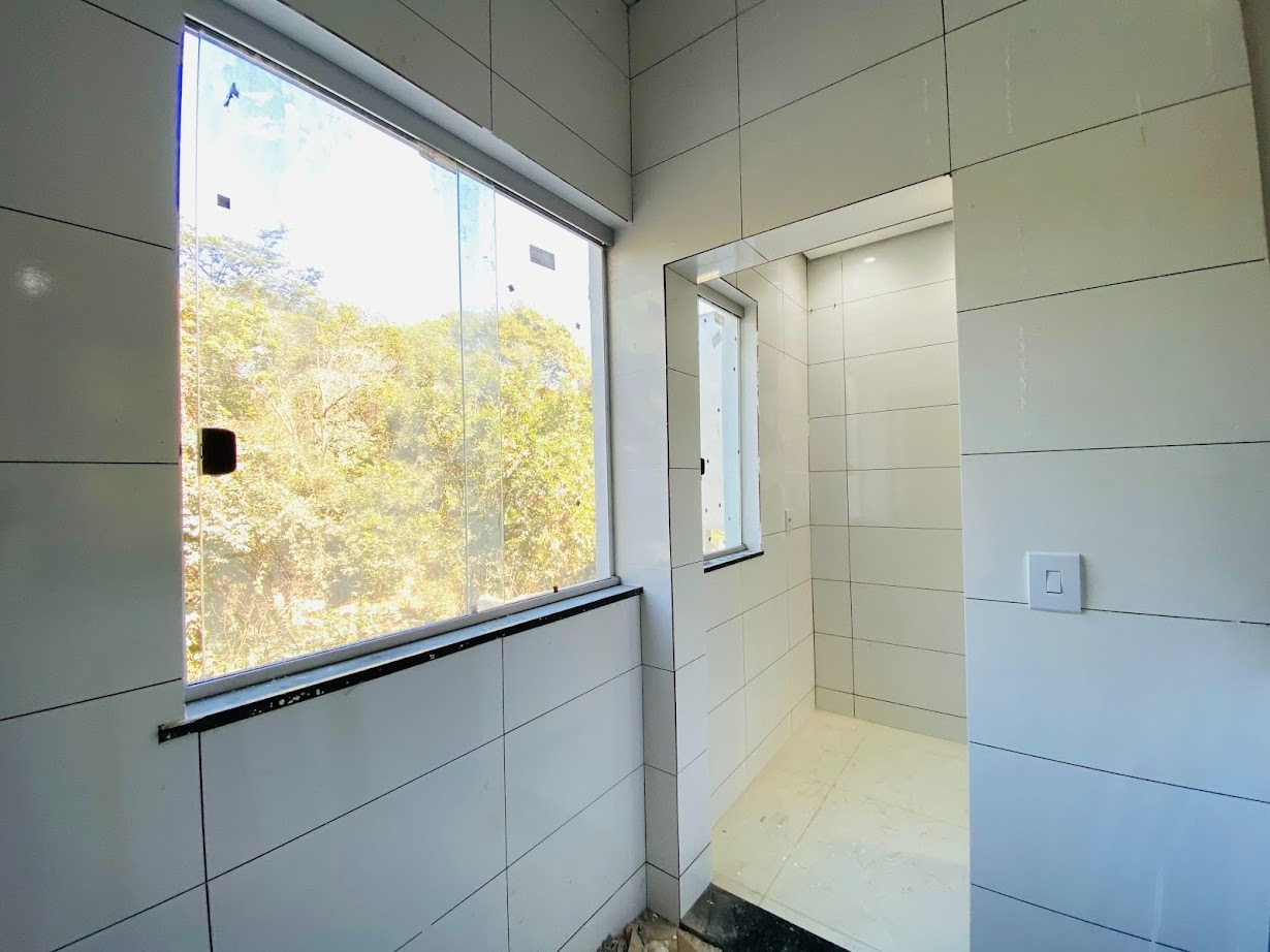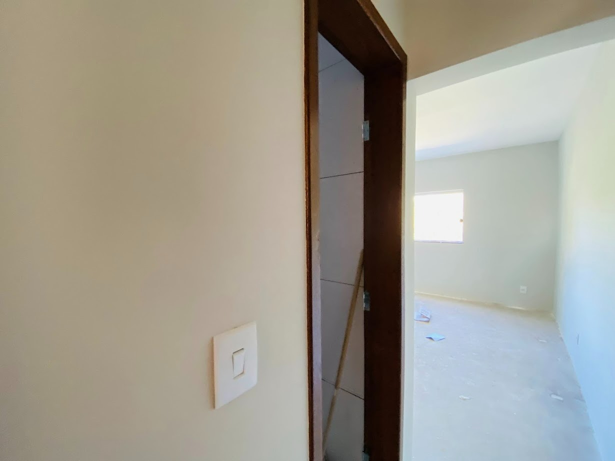 Casa triplex com área de 154m², uma sala, três quartos, uma área de serviço, três banheiros, duas suítes, cozinha revestida e com armários, uma varanda no quarto no terceiro andar e duas vagas de garagem.