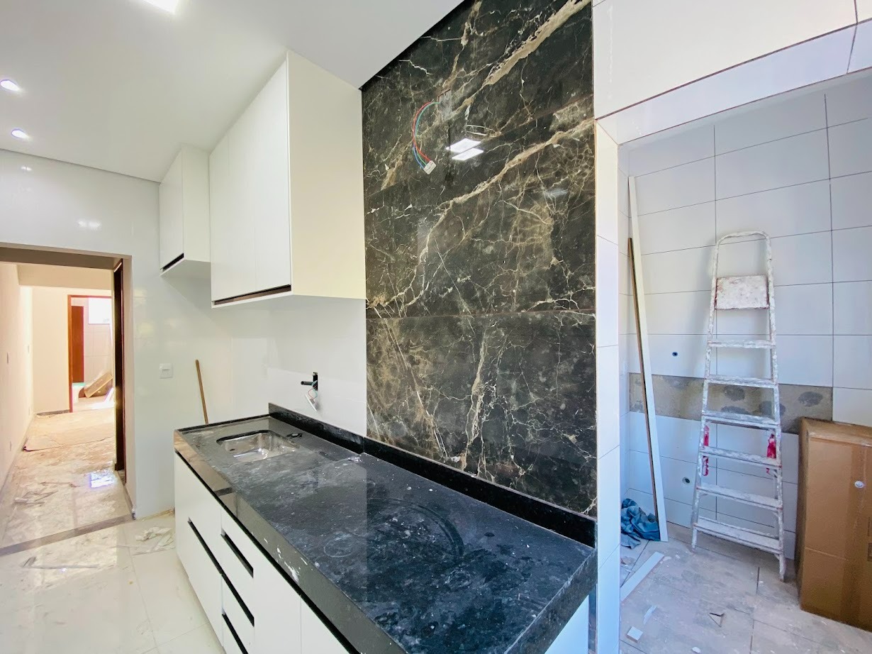 -01 Cozinha revestida e com armário;