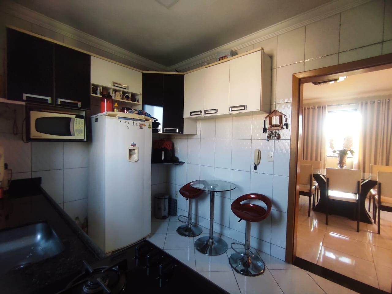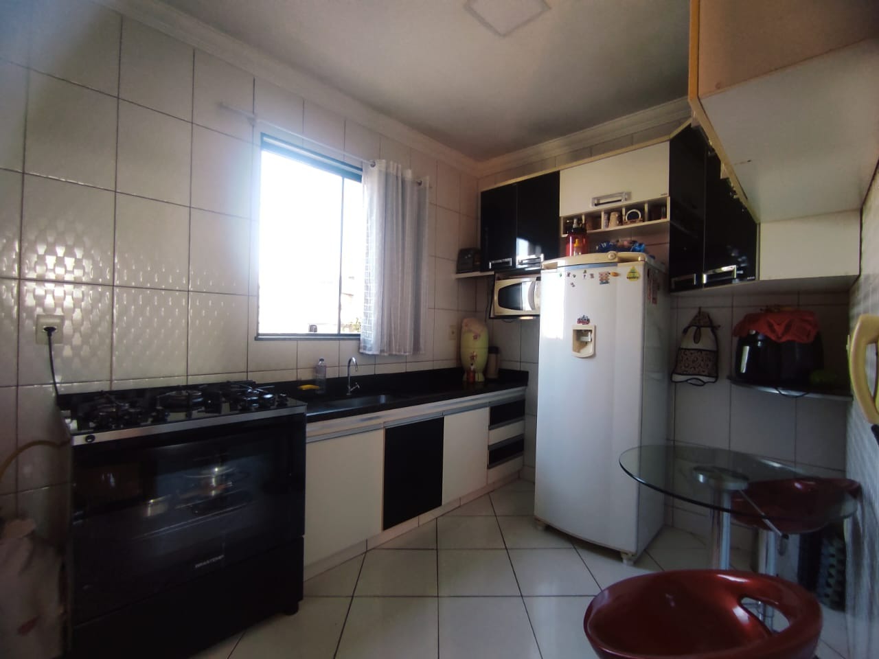 -01 Cozinha ampla, revestida com armários;