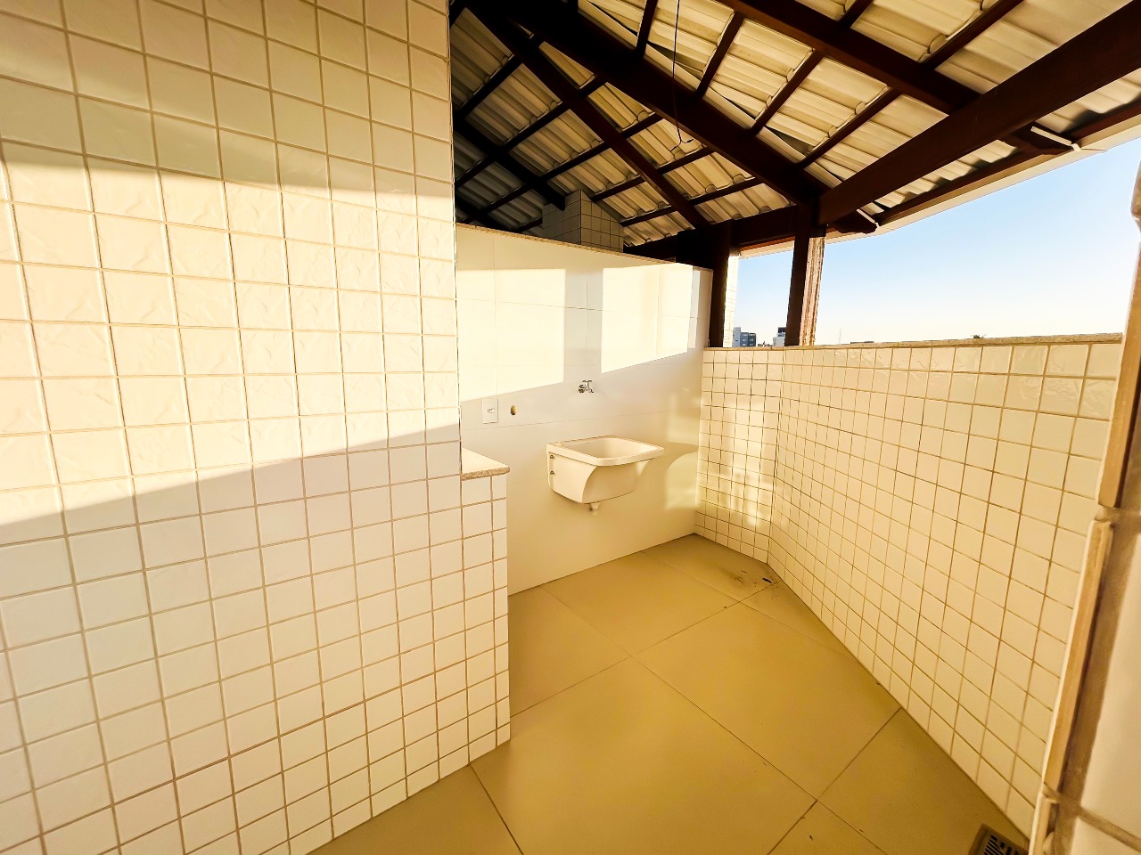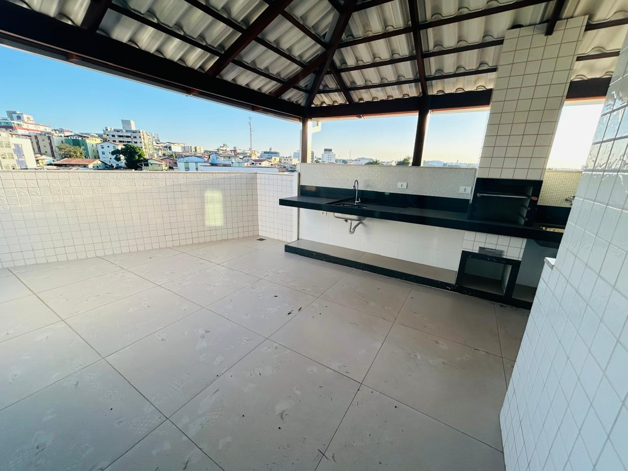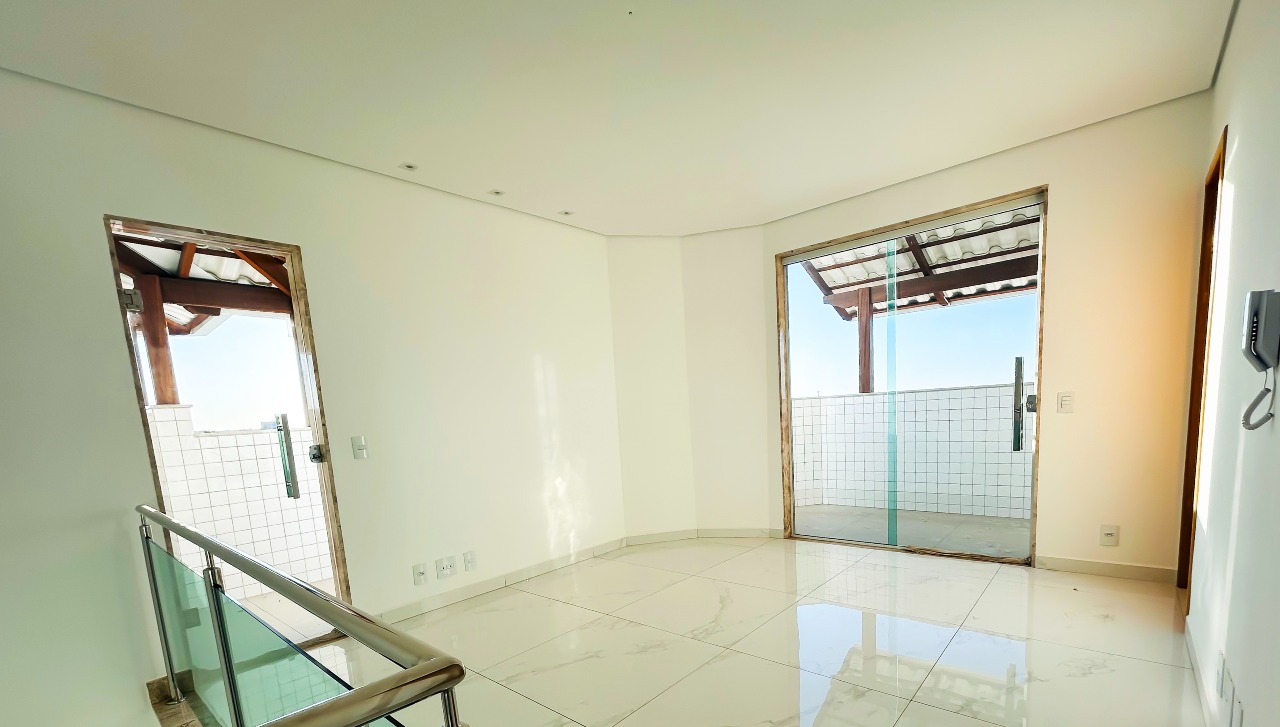 Cobertura localizada à 900 metros da praça Paulo Pinheiro Chagas, com aproximadamente 94m² de área total, com duas salas, três banheiros e três quartos sendo um suíte no bairro Eldorado, Contagem – MG